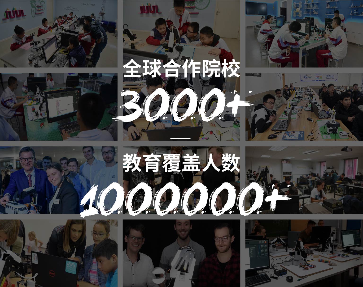 人工智能教育是一項長期系統性工程,越疆科技打造全鏈式人工智能教育體系,覆蓋中小學教育、職業教育及高等教育,積極推進人工智能多層次人才培養體系的構建。越疆科技與牛津大學、德國大眾汽車學院、清華大學、山東大學等國內外知名高校,在制造人才方面保持長期深度的合作,目前累計為全球超過 3000 院校提供創新教育服務,服務客戶超過 100 萬,為持續推動全球人工智能教育及世界制造業的全方位發展貢獻中國力量。