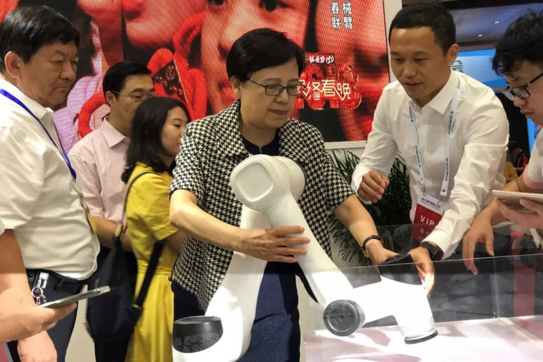 8 月 21 日下午,教育部原副部長、中國職業(yè)技術(shù)教育學(xué)會會長魯昕蒞臨展會現(xiàn)場,親自體驗了越疆新一代無編程全感知協(xié)作機(jī)械臂 DOBOT CR5,詢問了產(chǎn)品研發(fā)設(shè)計思路并結(jié)合職業(yè)技術(shù)教育方面的問題對越疆的發(fā)展提出了若干指導(dǎo)意見。