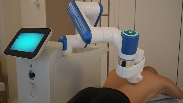 智能感知人體動作。在例如艾灸這樣的特定場景中,DOBOT Nova 能實時監測人體動態,始終保持安全距離。當末端高精度傳感器檢測到人機距離突破安全范圍,會立即提升高度,遠離皮膚表面,避免危險發生。