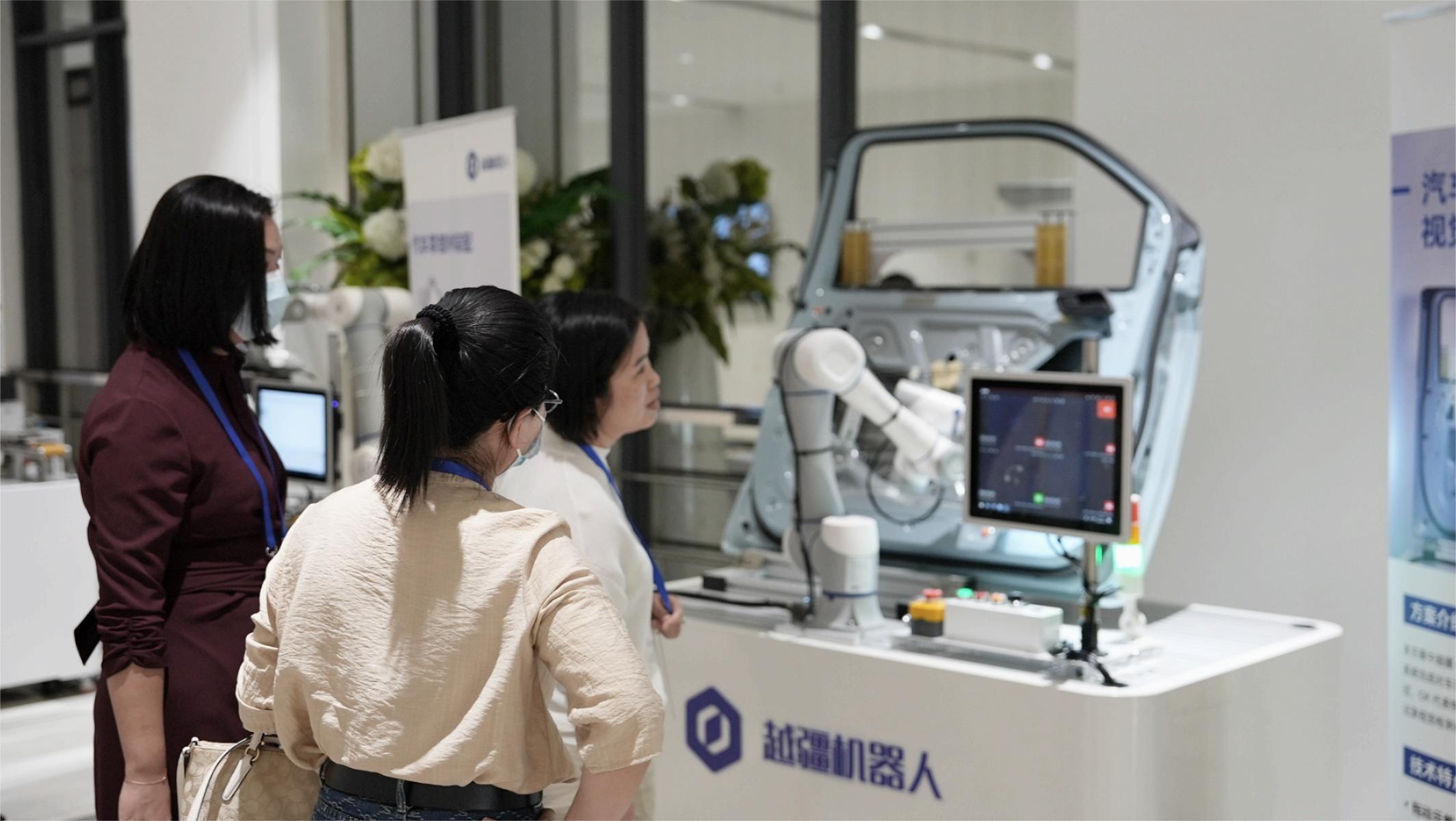 研討會現場還展示了越疆機器人在 3C、汽車等行業中的典型應用,包括螺絲鎖附、筆記本外殼打磨、SIM 卡分揀、手機中框檢測、汽車視覺缺陷檢測、汽車零部件裝配等,參會嘉賓直觀感受到協作機器人在易編程、易部署、安全性等方面的優勢。
