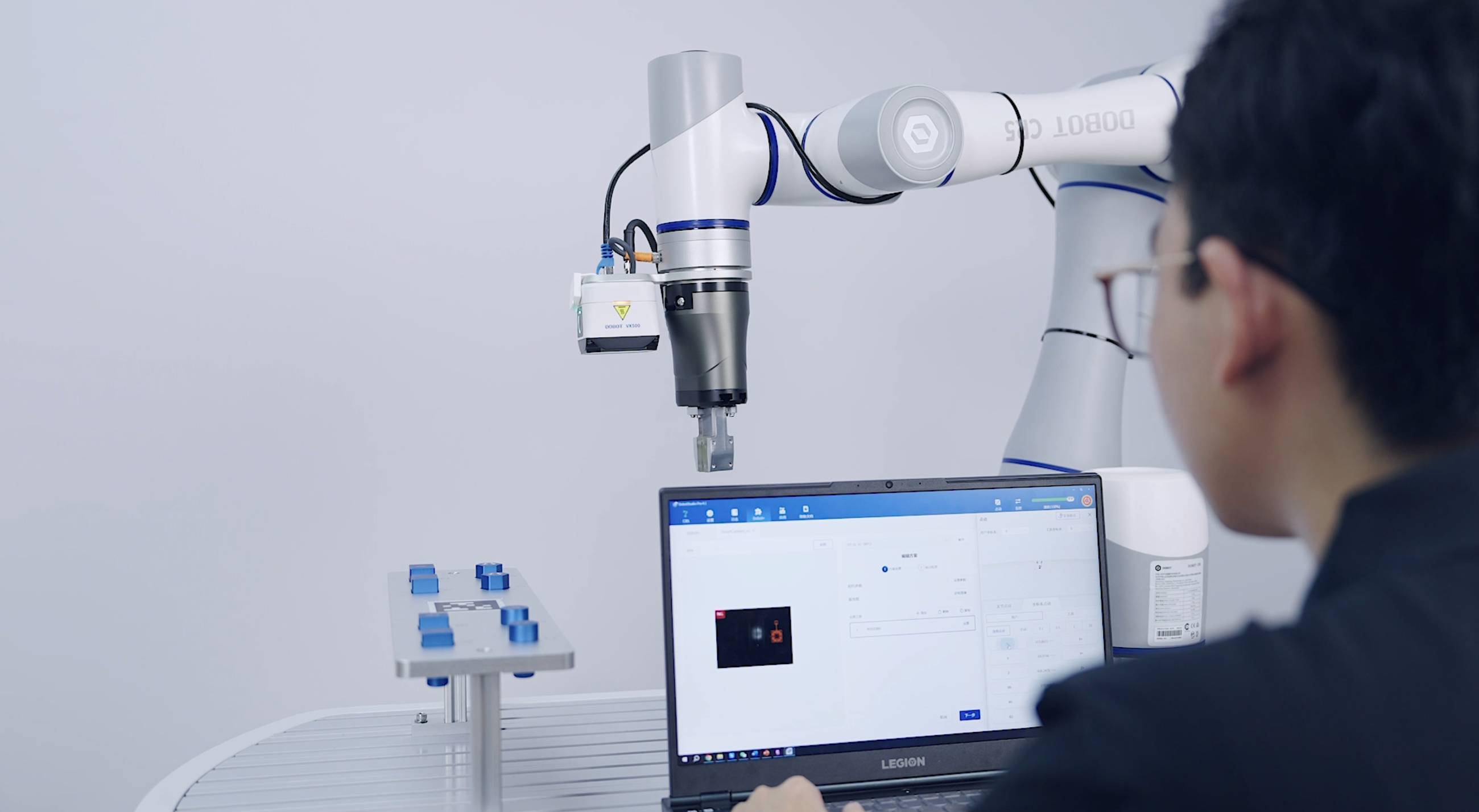 VX500 智能相機適配越疆 CRA 系列協作機器人與 DobotStudio Pro 軟件,無需額外安裝通信模塊與第三方操作軟件,即可實現機器人與相機聯動。軟件操作簡單,支持通過圖形化編程調用視覺功能,并對功能進行自由搭配,幫助快速完成調試部署。