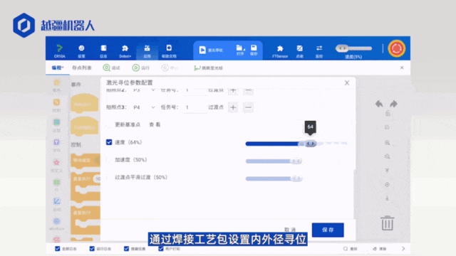 針對(duì)復(fù)雜多變的焊接需求,越疆機(jī)器人推出了功能更強(qiáng)大焊接工藝包,只需簡(jiǎn)單設(shè)置參數(shù),即可適配市面上大部分主流焊接機(jī),輕松實(shí)現(xiàn)激光、弧焊接等多種焊接方案。