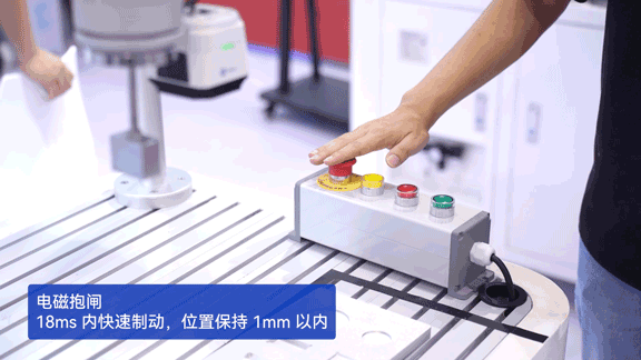 電磁抱閘安裝在機(jī)器人的關(guān)節(jié)中,當(dāng)機(jī)器人使能或遭遇意外斷電時,能夠在18 ms內(nèi)迅速制動,末端位移小于 0.95 mm。相比于滑動距離大于10 mm的傳統(tǒng)撞針式抱閘,電磁抱閘具有更快的響應(yīng)速度和更高的安全性。