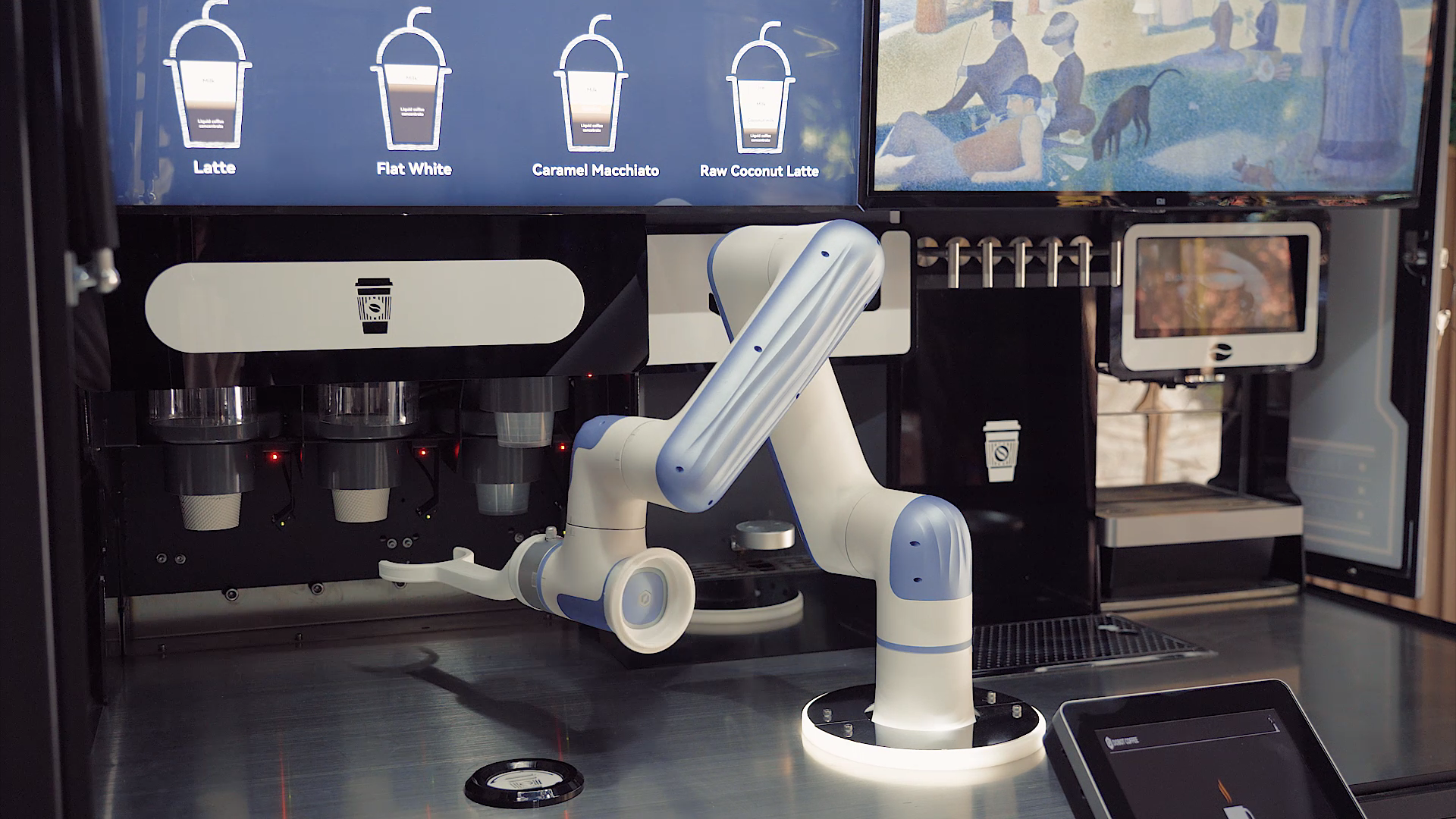 在公共空間,作為咖啡師和調酒師的協作機器人作為吸引眼球的景點,為企業吸引了周邊客戶的注意力并制造了話題。在咖啡制作過程中,協作機器人取一個干凈的杯子,加入適量的牛奶,沖泡完美的濃縮咖啡,并巧妙地制作拿鐵圖案,然后密封杯子并將其交付給客戶。這一高效流程保證了每一杯咖啡的一致性和高品質,同時允許根據個人喜好進行定制。