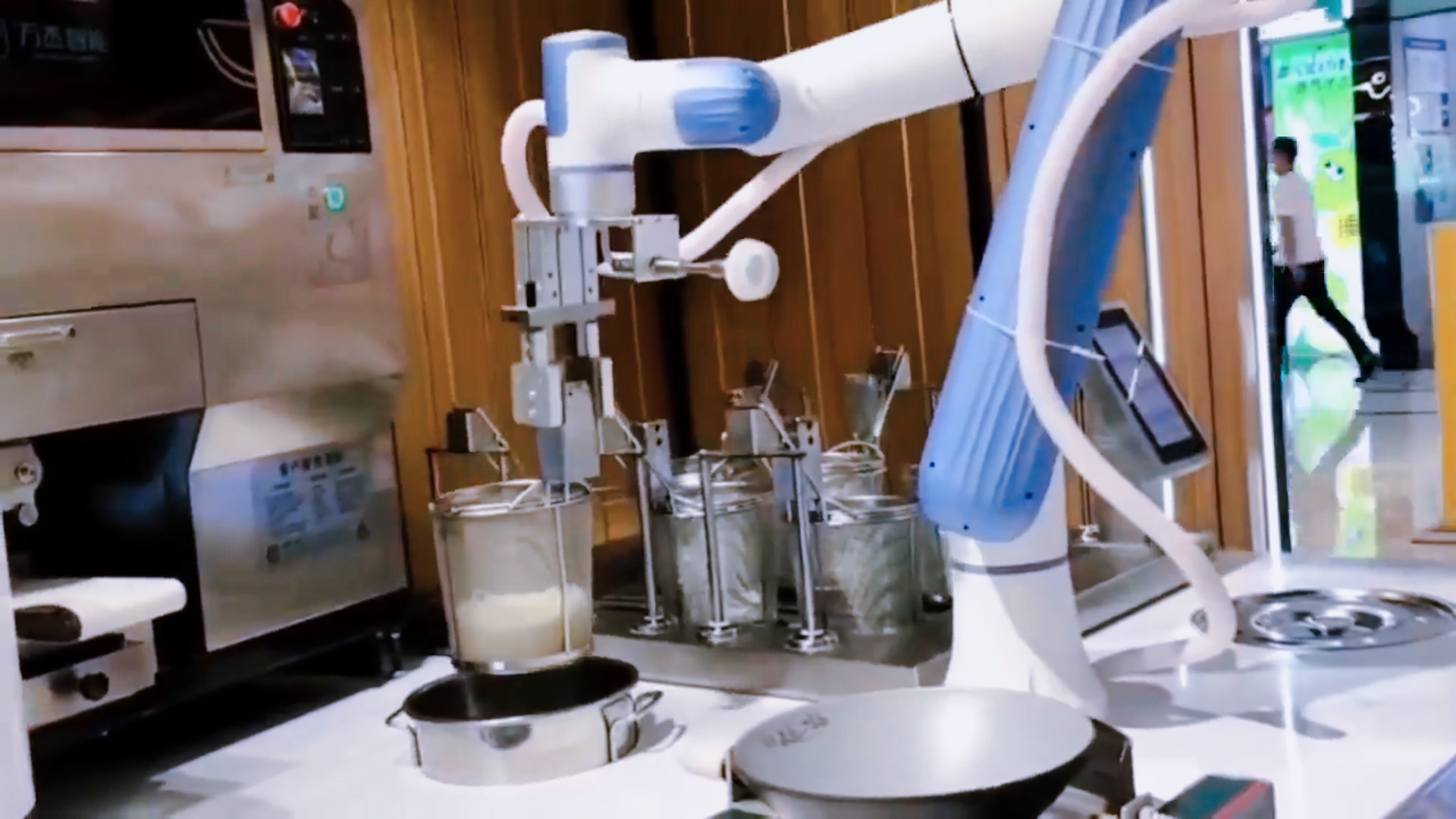 在廚房中,協作機器人擅長重復的烹飪任務。想象一下,在一家面館里,協作機器人將面條煮得恰到好處,并將它們與適量的肉湯和配料混合,確保每次都保持一致,就可達成面條的快速出餐。